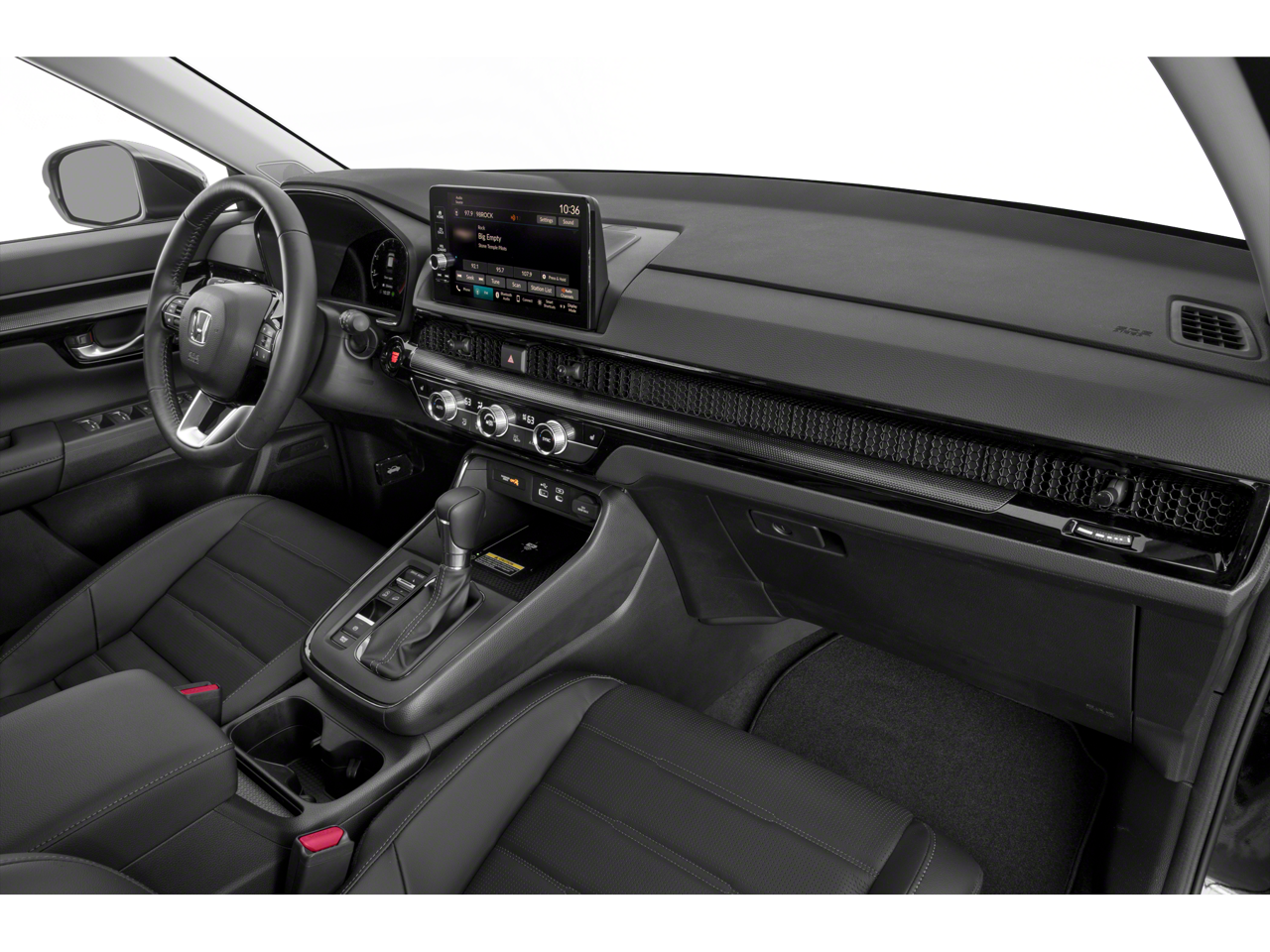 Elevate your driving experience with the CR-V EX-L's premium features, including a 320-Watt AM/FM/HD/SiriusXM Audio System, dual-zone automatic climate control, and a power-adjustable driver's seat with memory settings. The spacious interior offers ample room for passengers and cargo, while the leather-wrapped steering wheel and shift knob add a touch of refined sophistication.