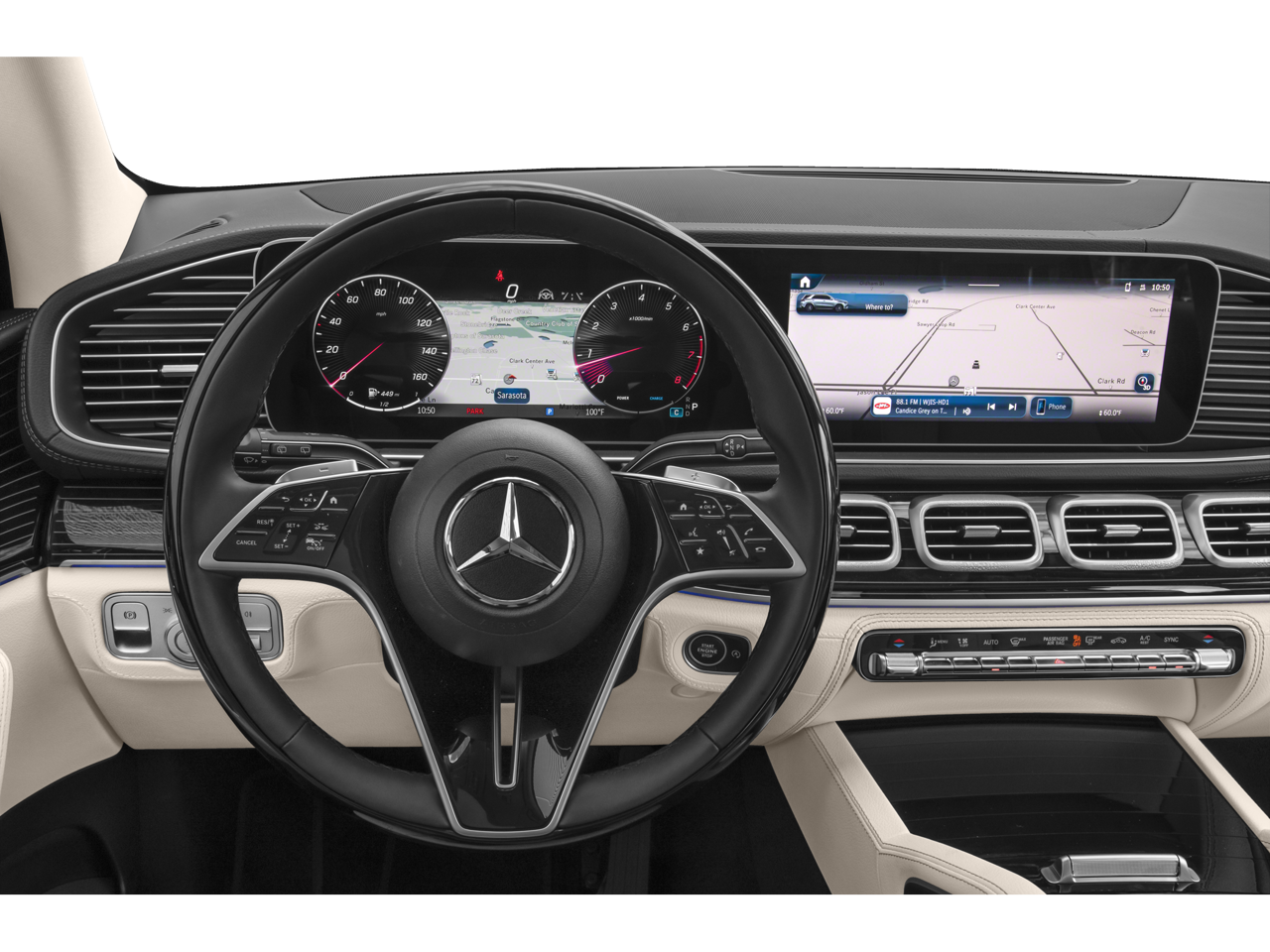 **NAVIGATION**, **APPLE CARPLAY**, **ANDROID AUTO**, 20 AMGĀ® Twin 5-Spoke Wheels, Active Distance Assist DISTRONICĀ®, Active Lane Change Assist, Active Lane Keeping Assist, Active Speed Limit Assist, Active Steering Assist, AMGĀ® Line Body Styling, AMGĀ® Line Exterior, Augmented Video for Navigation, BurmesterĀ® Surround Sound System w/Dolby Atmos, Driver Assistance Package, Exclusive Trim, Extended Restart in Stop & Go Traffic, Heated Steering Wheel, Heated Washer System, Increased Towing Capacity, Music Streaming, Navigation system: MBUX, Panorama Power Tilt/Sliding Sunroof, Perforated Brake Discs, Route-Based Speed Adaptation, Sound Personalization, Trailer Hitch, Ventilated Front Seats, Winter Package, 3.27 Axle Ratio, 4-Wheel Disc Brakes, 8 Speakers, ABS brakes, Air Conditioning, Alloy wheels, AM/FM radio: SiriusXM, Anti-whiplash front head restraints, Apple CarPlayĀ®/Android AutoĀ®, Auto High-beam Headlights, Auto tilt-away steering wheel, Auto-dimming door mirrors, Auto-dimming Rear-View mirror, Automatic temperature control, Brake assist, Bumpers: body-color, Compass, Delay-off headlights, Driver door bin, Driver vanity mirror, Dual front impact airbags, Dual front side impact airbags, Electronic Stability Control, Emergency communication system: eCall Emergency System, Exterior Parking Camera Rear, Four wheel independent suspension, Front anti-roll bar, Front Bucket Seats, Front Center Armrest, Front dual zone A/C, Front reading lights, Fully automatic headlights, Garage door transmitter: HomeLink, Heated door mirrors, Heated front seats, Heated Power Front Seats w/Memory, HERMES Communications Module LTE, Illuminated entry, Knee airbag, Leather steering wheel, Low tire pressure warning, MB Navigation, MB-Tex Upholstery, Memory seat, Occupant sensing airbag, Outside temperature display, Overhead airbag, Panic alarm, Passenger door bin, Passenger vanity mirror, Power adjustable front head restraints, Power door mirrors, Power driver seat, Power Liftgate, Power passenger seat, Power steering, Power windows, Premium audio system: MBUX, Radio data system, Radio: 12.3 Media Display w/Touchscreen, Rain sensing wipers, Rear anti-roll bar, Rear fog lights, Rear reading lights, Rear seat center armrest, Rear window defroster, Rear window wiper, Remote keyless entry, Security system, SiriusXM Satellite Radio, Speed control, Speed-sensing steering, Speed-Sensitive Wipers, Split folding rear seat, Spoiler, Steering wheel memory, Steering wheel mounted audio controls, Tachometer, Telescoping steering wheel, Tilt steering wheel, Traction control, Trip computer, Turn signal indicator mirrors, Weather band radio, Wireless Charging, Wireless Smartphone Integration, **BACK UP CAMERA**, **LANE ASSIST**, **BLIND SPOT MONITOR**, **BluetoothĀ®**, **CARFAX ONE OWNER**, **HEATED SEATS**, **POWER SEAT**, **LEATHER SEATS**, **TOW PKG**, **PANORAMIC MOONROOF**, **AWD**, 20 AMGĀ® Twin 5-Spoke Wheels, Active Distance Assist DISTRONICĀ®, Active Lane Change Assist, Active Lane Keeping Assist, Active Speed Limit Assist, Active Steering Assist, AMGĀ® Line Body Styling, AMGĀ® Line Exterior, Augmented Video for Navigation, BurmesterĀ® Surround Sound System w/Dolby Atmos, Driver Assistance Package, Exclusive Trim, Extended Restart in Stop & Go Traffic, Heated Steering Wheel, Heated Washer System, Increased Towing Capacity, Music Streaming, Navigation system: MBUX, Panorama Power Tilt/Sliding Sunroof, Perforated Brake Discs, Route-Based Speed Adaptation, Sound Personalization, Trailer Hitch, Ventilated Front Seats, Winter Package.