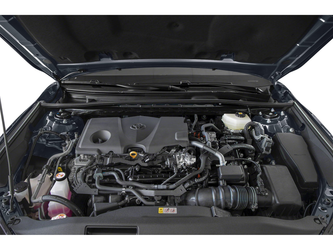 2.5L 4-Cylinder 16V DOHC, 4-Wheel Disc Brakes, 6 Speakers, ABS brakes, Air Conditioning, Alloy wheels, AM/FM radio: SiriusXM, Apple CarPlay/Android Auto, Auto High-beam Headlights, Automatic temperature control, Brake assist, Bumpers: body-color, Delay-off headlights, Driver door bin, Driver vanity mirror, Dual front impact airbags, Dual front side impact airbags, Electronic Stability Control, Emergency communication system: Safety Connect (up to 10-year trial subscription), Exterior Parking Camera Rear, Four wheel independent suspension, Front anti-roll bar, Front Bucket Seats, Front Center Armrest, Front dual zone A/C, Front reading lights, Fully automatic headlights, Heated door mirrors, Illuminated entry, Knee airbag, Leather Shift Knob, Leather steering wheel, Low tire pressure warning, Occupant sensing airbag, Outside temperature display, Overhead airbag, Overhead console, Panic alarm, Passenger door bin, Passenger vanity mirror, Power door mirrors, Power driver seat, Power steering, Power windows, Radio data system, Radio: Toyota Audio Multimedia w/8 Touchscreen, Rear anti-roll bar, Rear reading lights, Rear seat center armrest, Rear side impact airbag, Rear window defroster, Remote keyless entry, Security system, SofTex & Fabric Seat Trim, Speed control, Speed-sensing steering, Split folding rear seat, Spoiler, Steering wheel mounted audio controls, Telescoping steering wheel, Tilt steering wheel, Traction control, Trip computer, Turn signal indicator mirrors, Variably intermittent wipers, Wheels: 18 Black-Finished Alloy, 2.5L 4-Cylinder 16V DOHC.